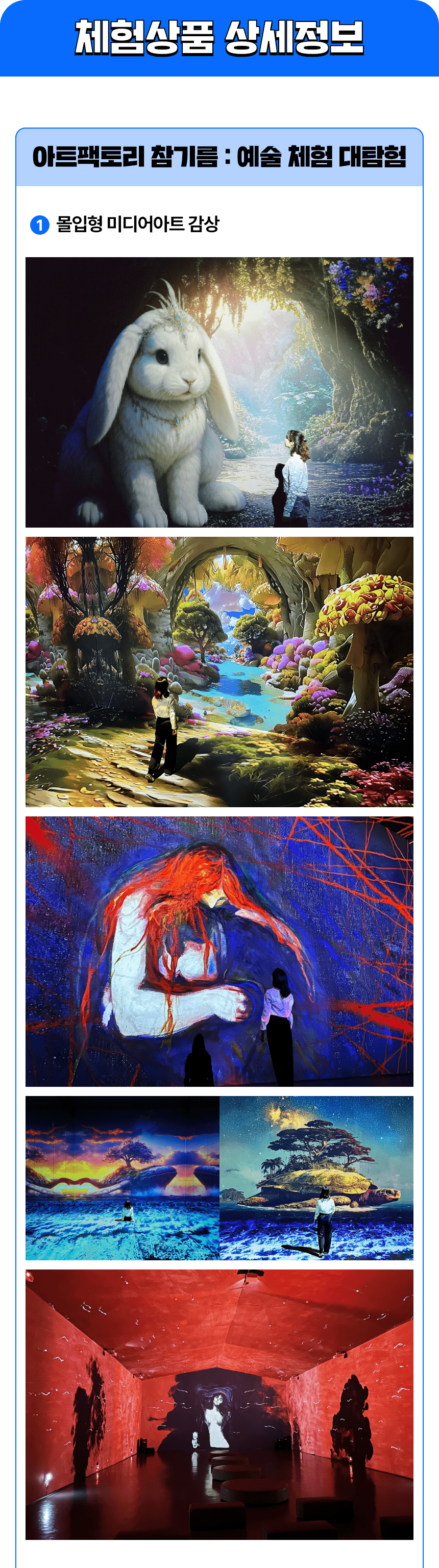 기타사항 | ▷ 체험단 선정 후 방문 일정 확인 요청 등 참여 관리를 위한 소통 시 적극적인 협조 필수 ▷ 옵션 및 일정 변경은 총 1회에 한하여 가능하며, 노쇼의 경우 추후 재 참여 불가능 ▷ 후기 작성/ 업로드 콘텐츠는 최소 6개월이상 유지 필수. 비 이행 시 내년도 체험전 참여 및 관련 참여프로그램 신청 제한 |