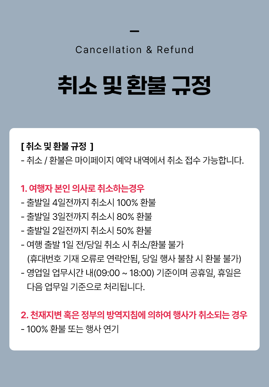 ※ 예약된 일정에 투어를 진행하지 않을경우, 예치금은 환급되지 않습니다