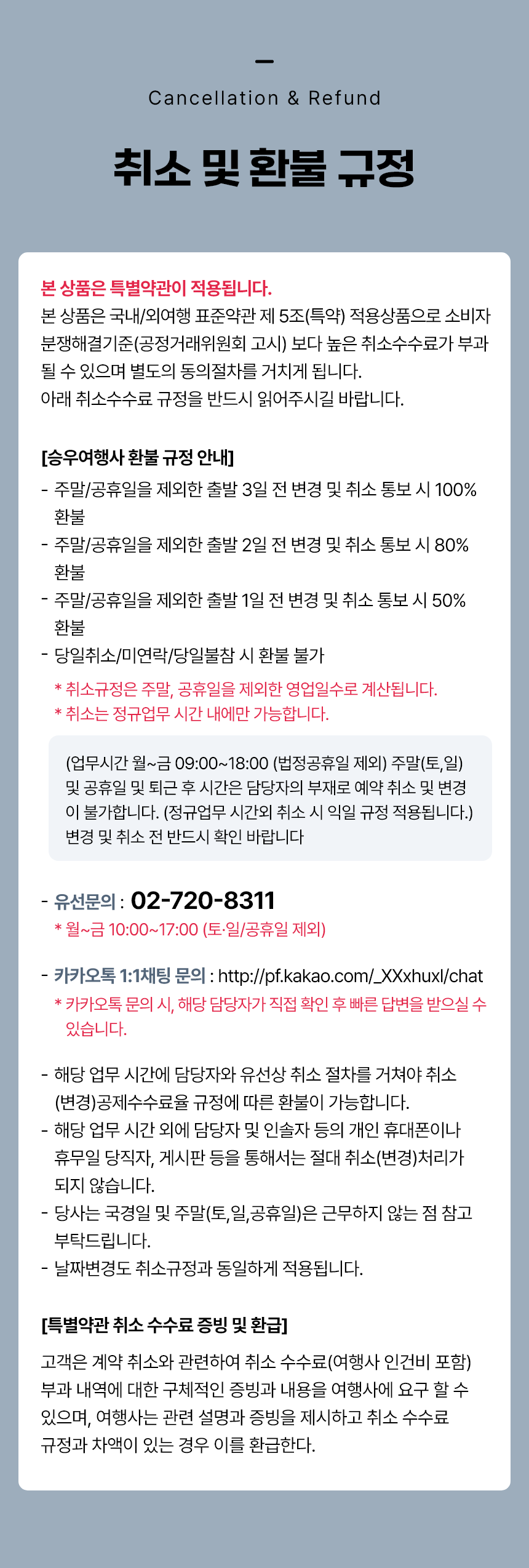 ※ 예약된 일정에 투어를 진행하지 않을경우, 예치금은 환급되지 않습니다