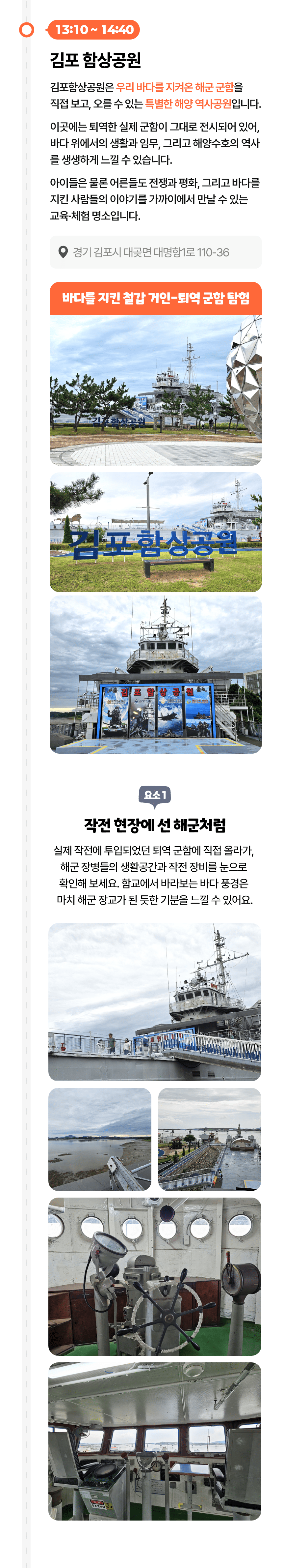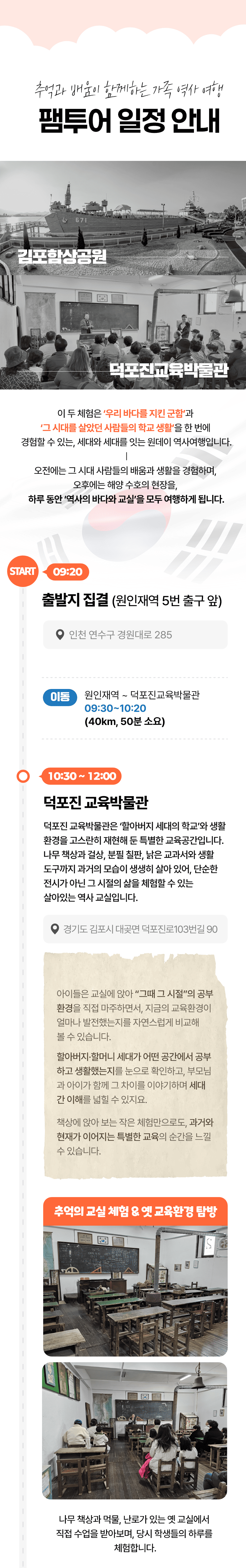[아이 손잡고 떠나는 타임머신 여행(버스투어)] 덕포진교육박물관, 김포함상공원! 전복가득뚝배기 + 광어회까지 9.19(금), 오전 9시 20분, 원인재역 집결, 선착순 30명 모집