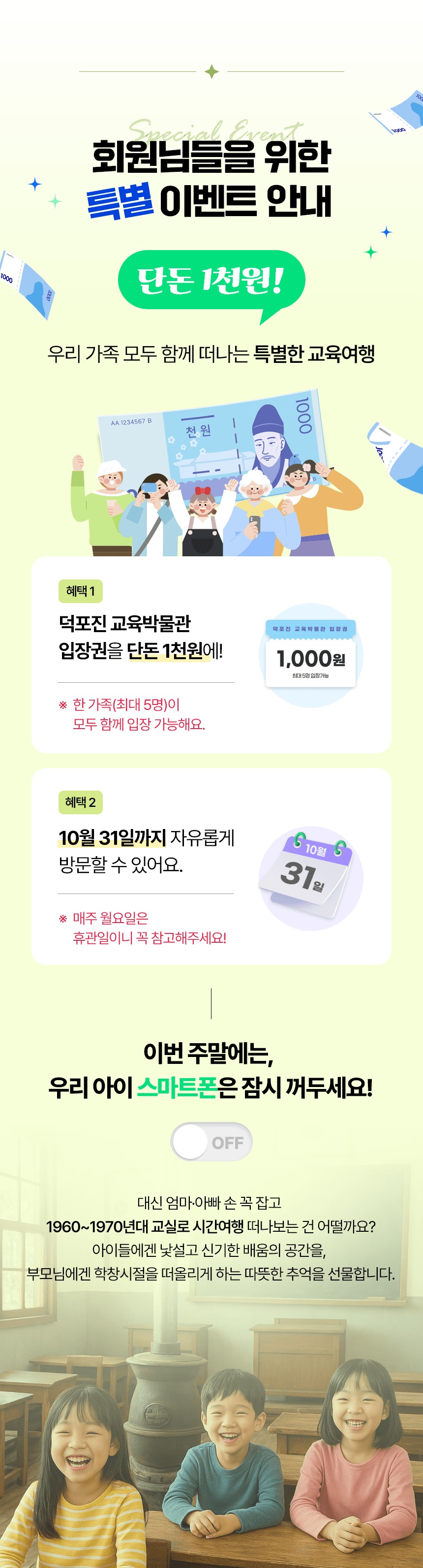 [트립파인더 특별 이벤트] 1천원으로 한가족 모두가 관람 가능 (최대 5인까지), 김포 덕포진교육박물관! 1960~1970년대 교육환경 투어
